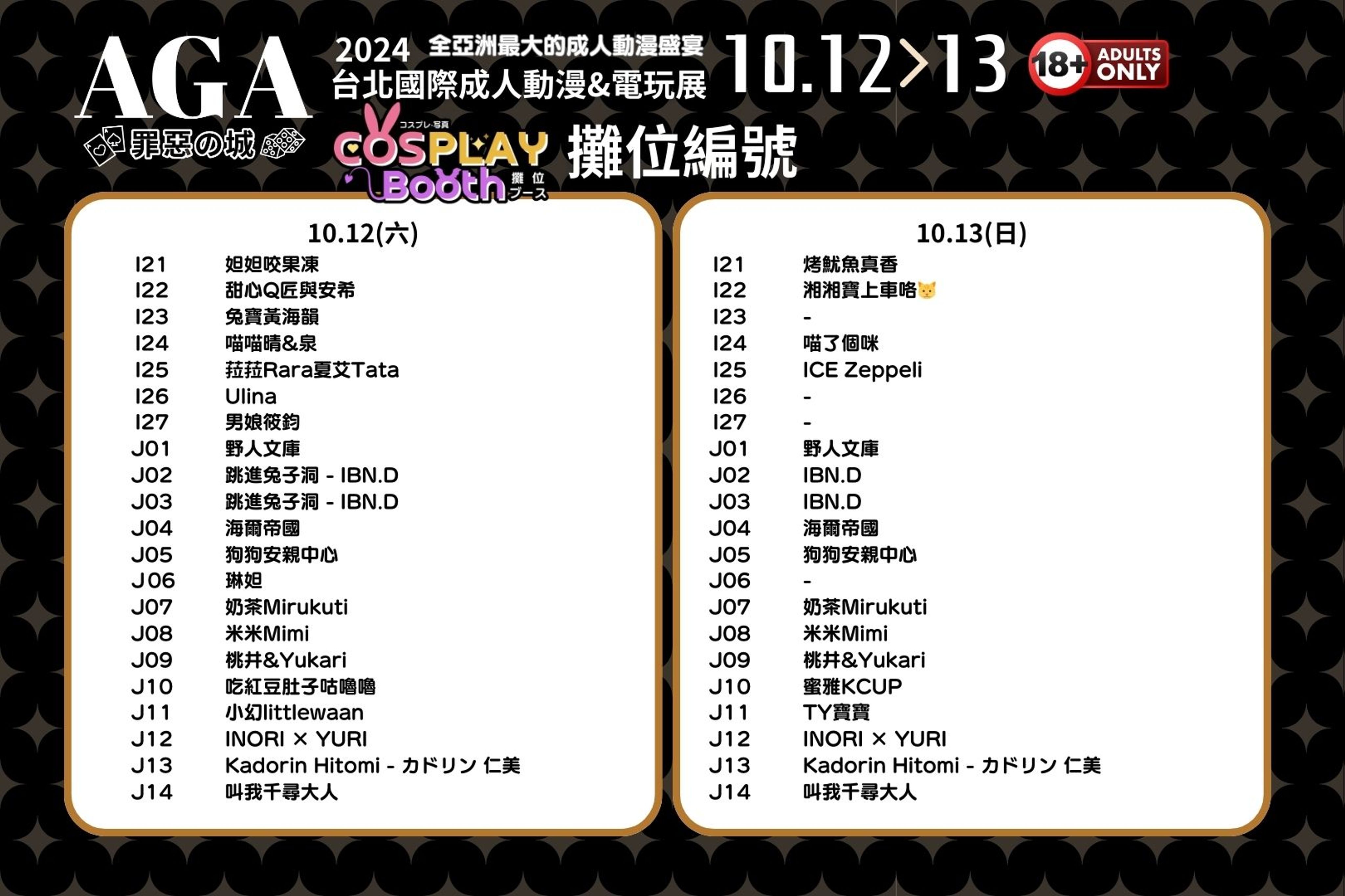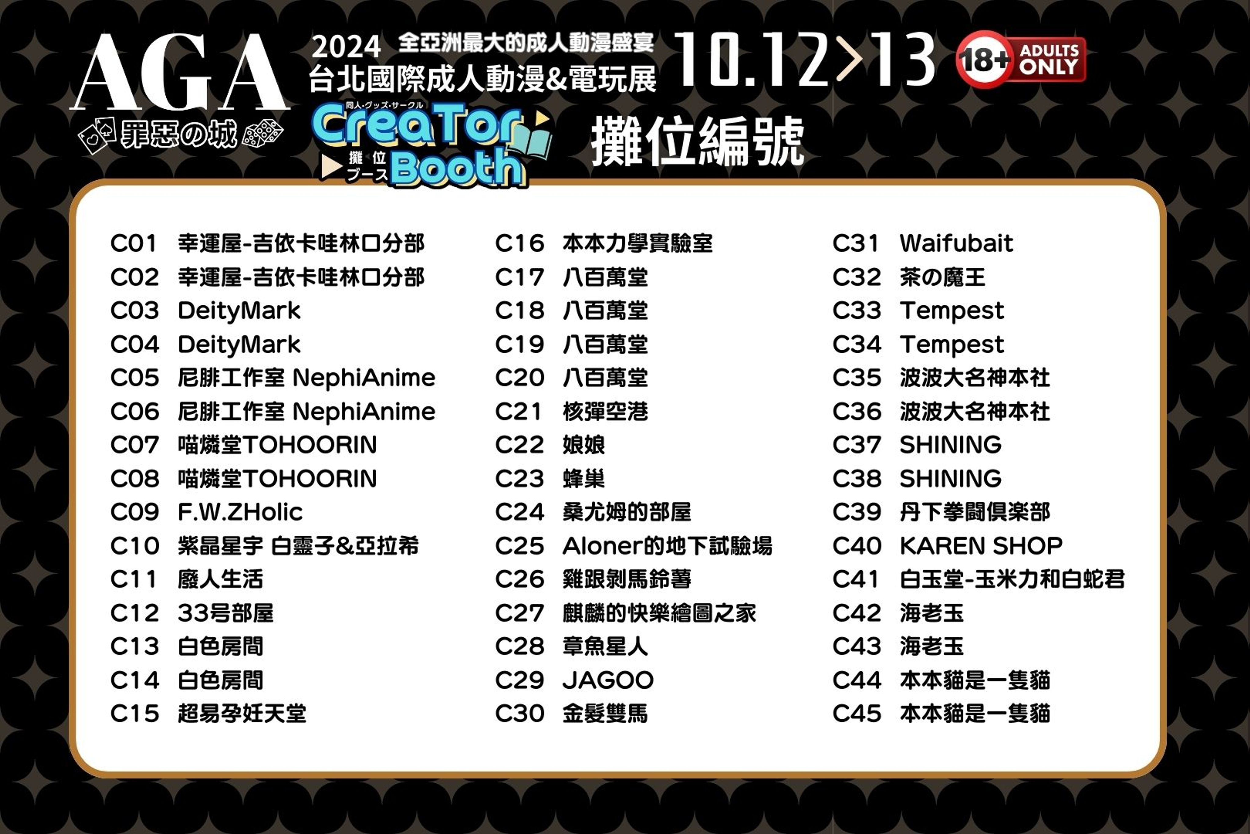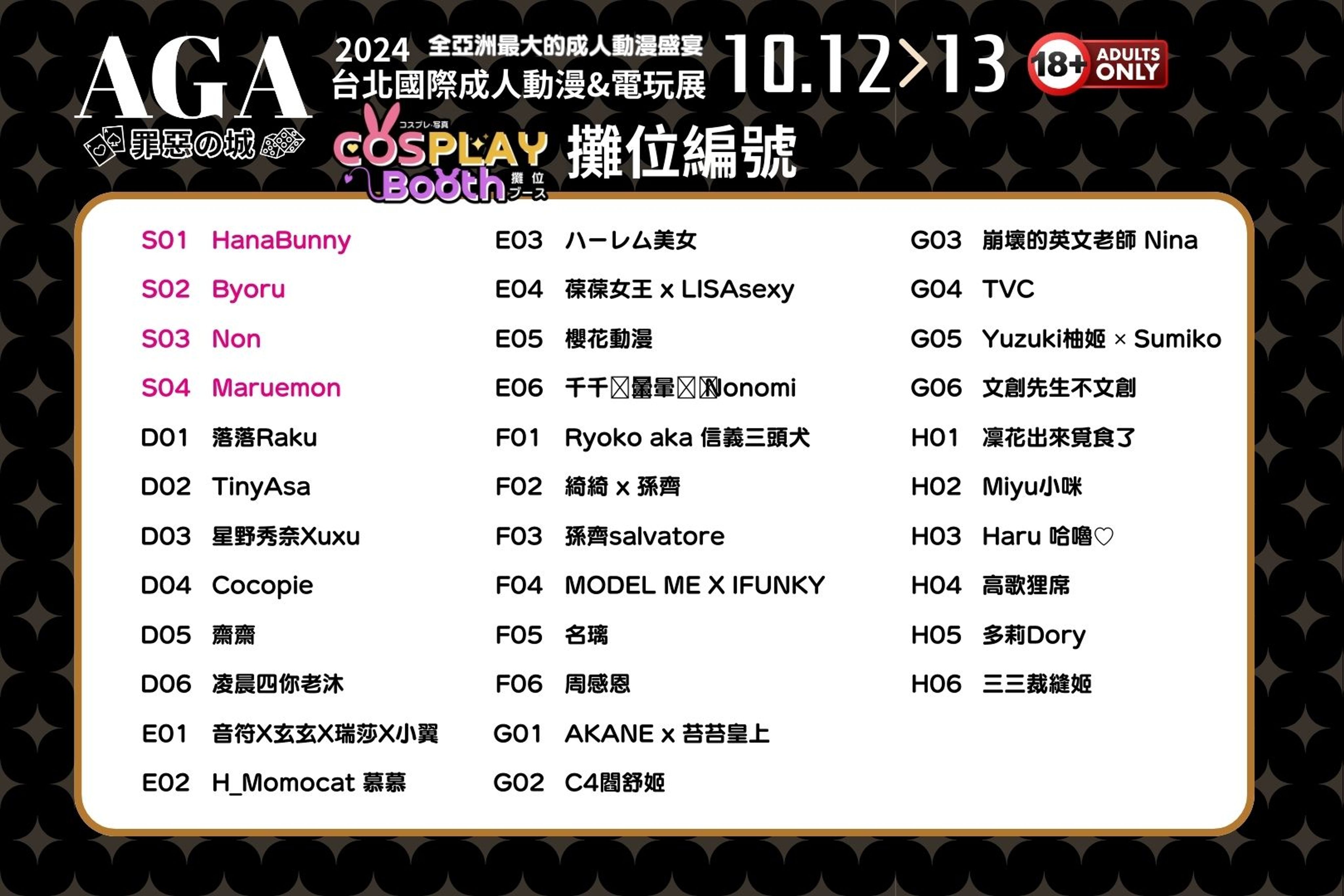 AGA|錄取攤位列表|台北國際成人動漫&電玩展