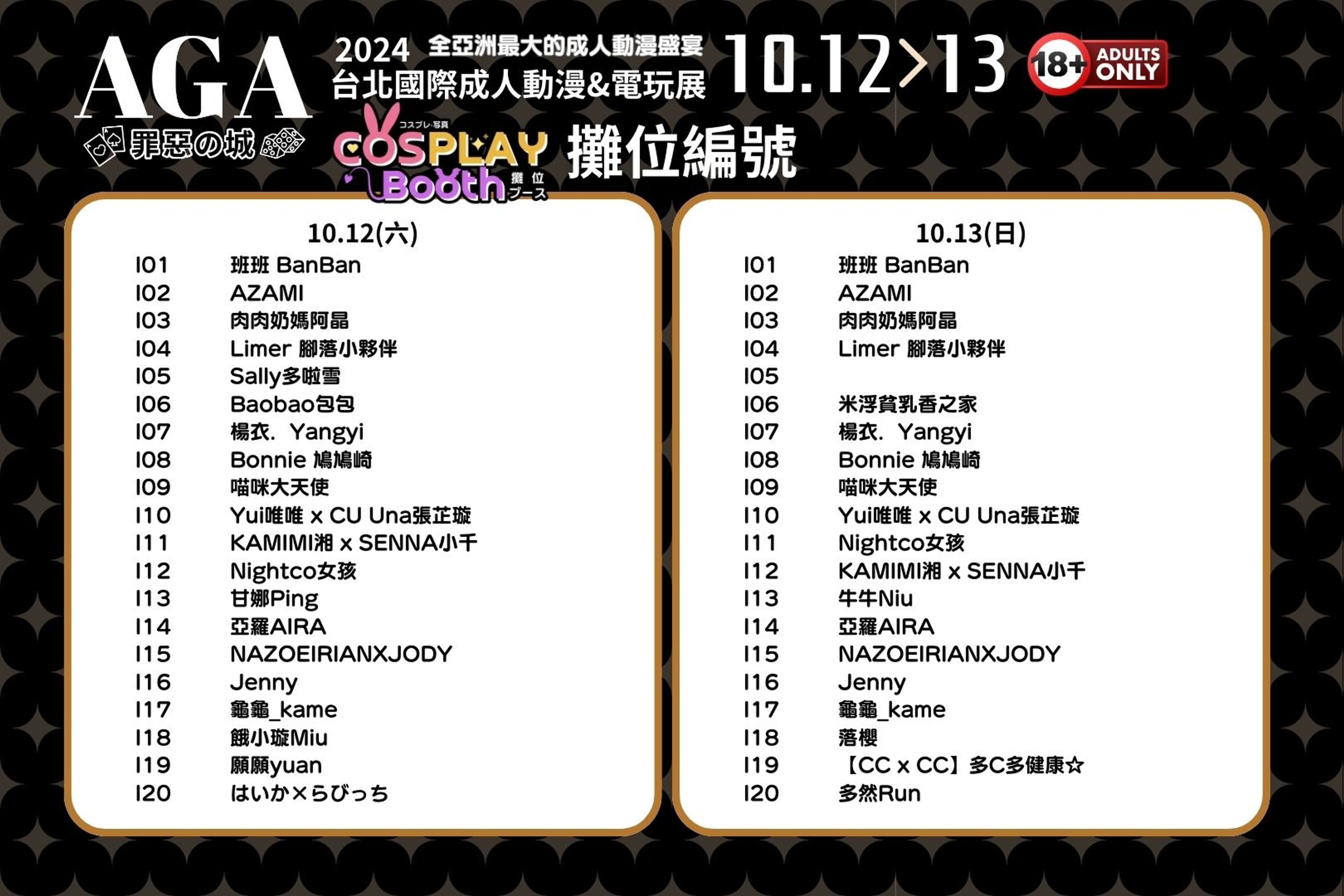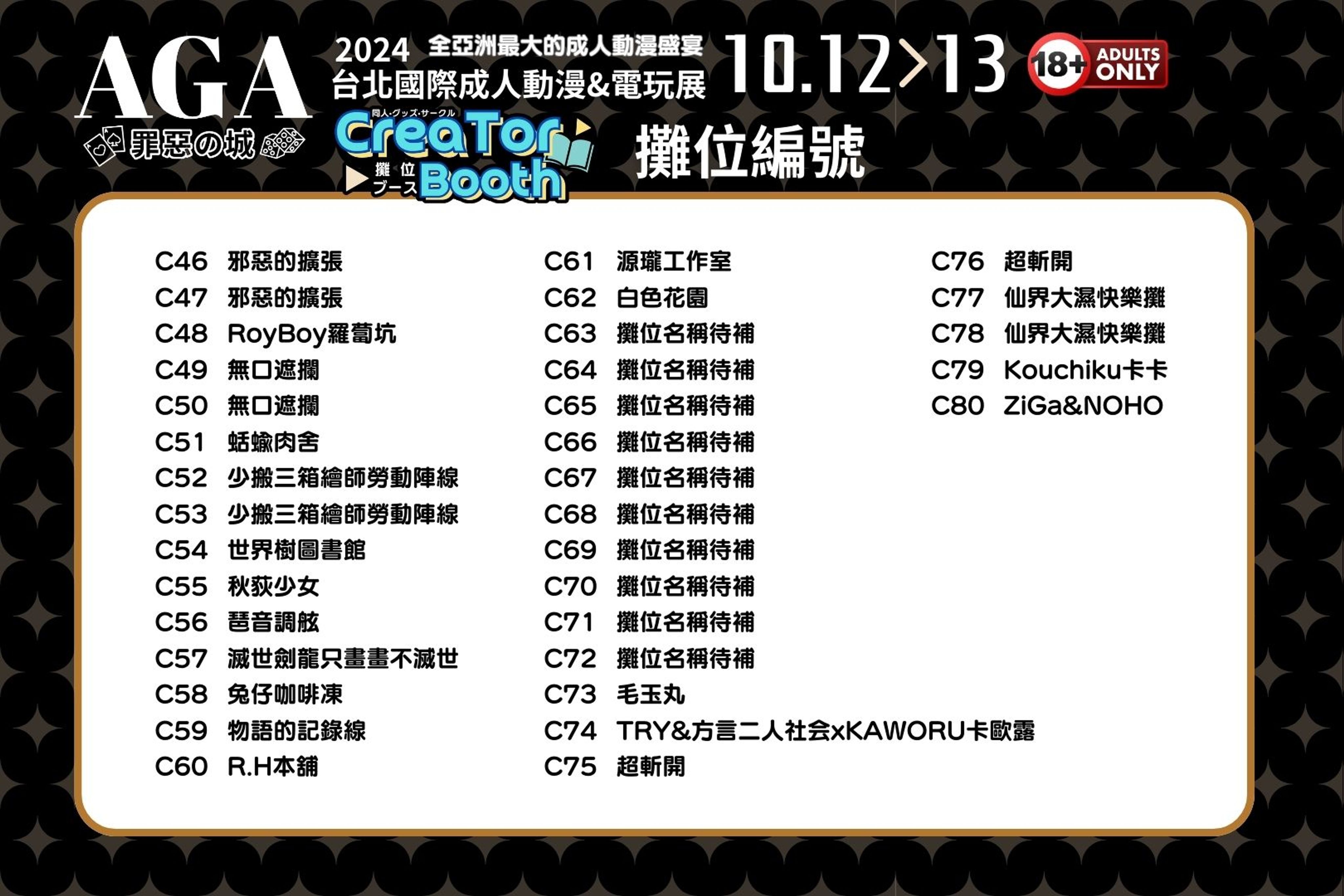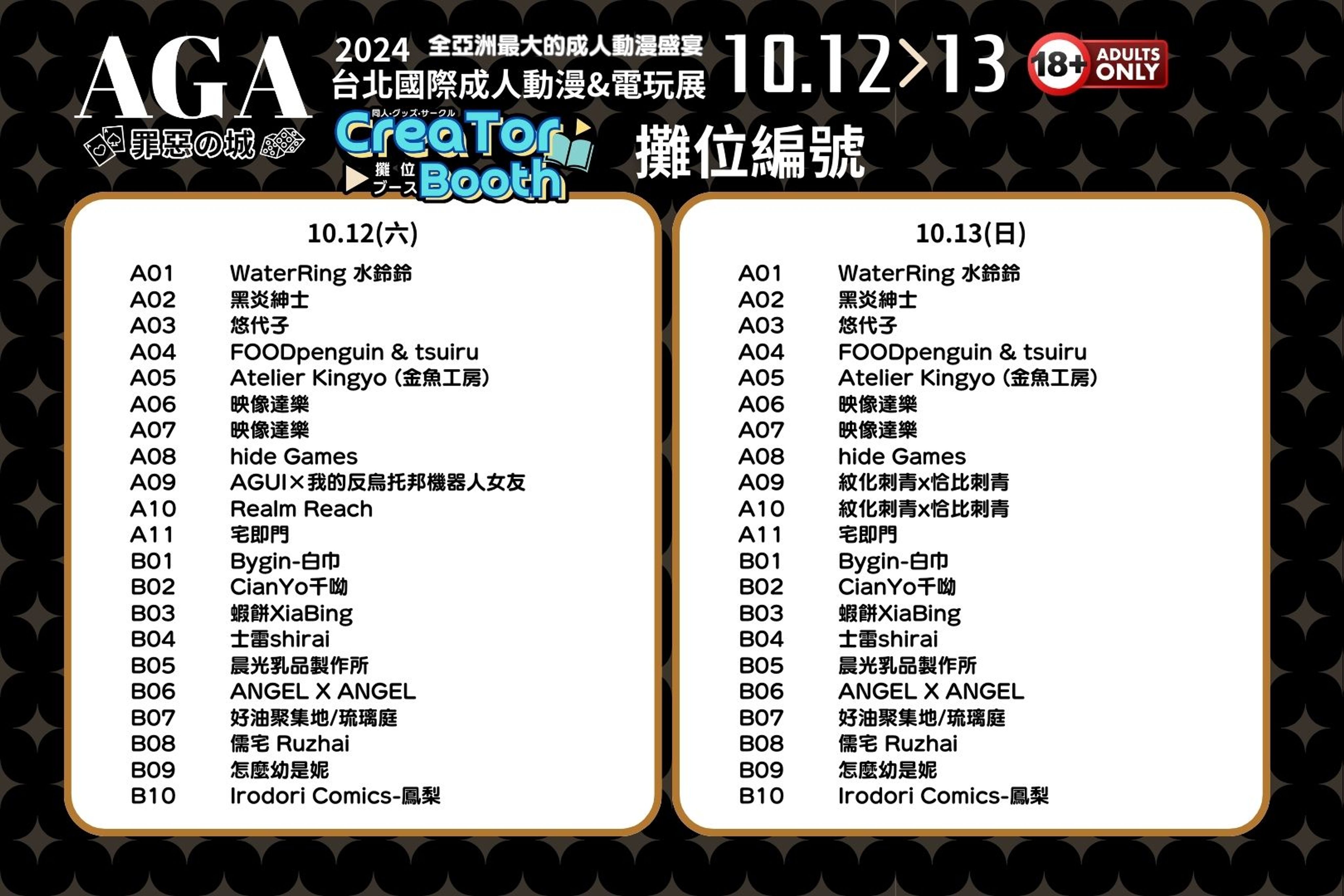 AGA|錄取攤位列表|台北國際成人動漫&電玩展